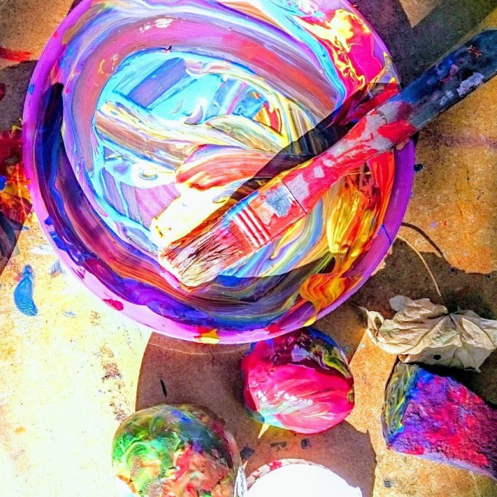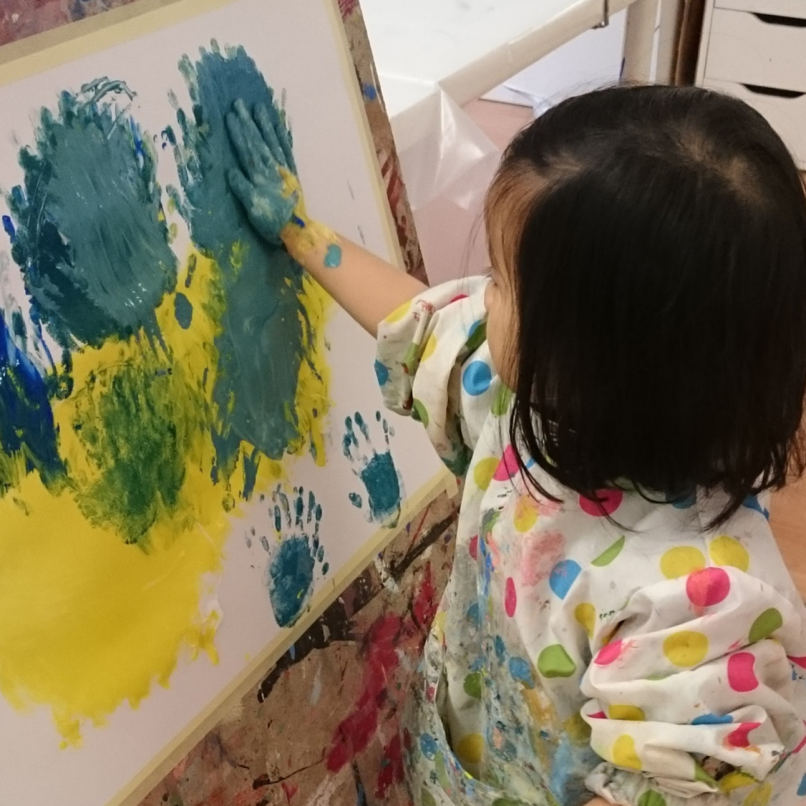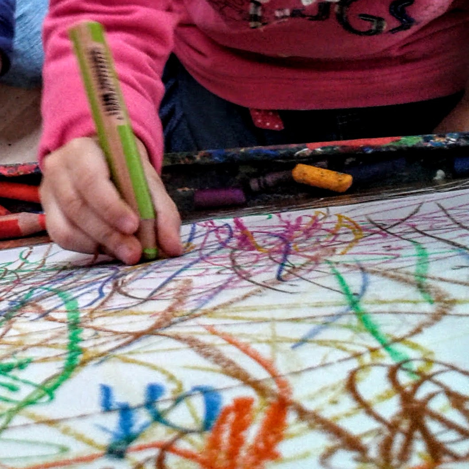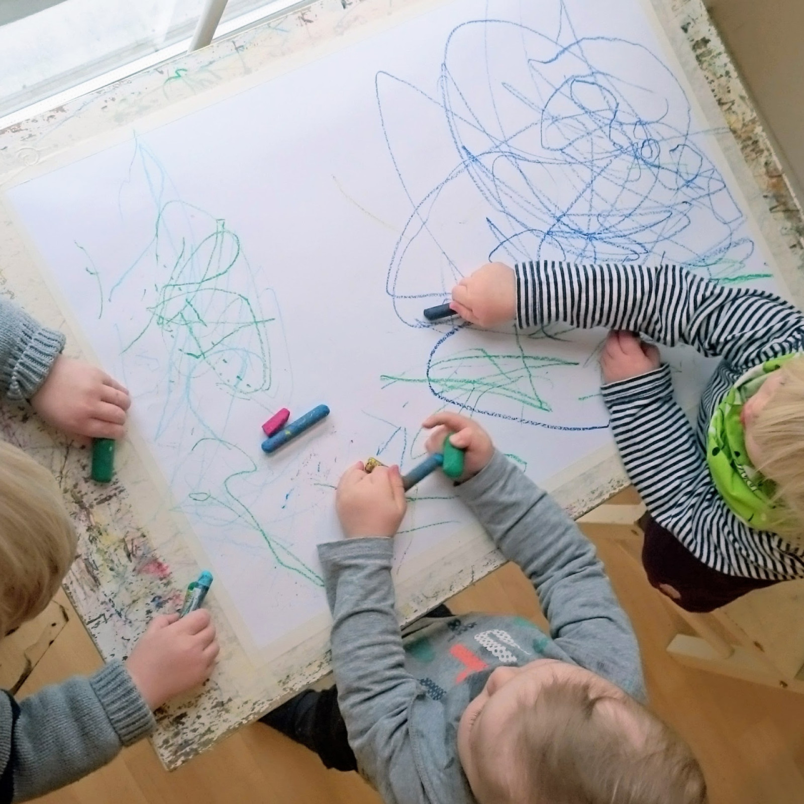 Kinder haben das Bedürfnis, zu gestalten. Dabei steht der wertfreie Prozess im Vordergrund. Ich biete den Kindern schon früh große Formate und unterschiedliche Materialien an.